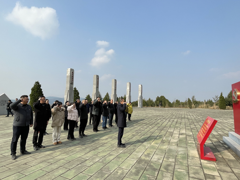 在庄严肃穆的飞龙山公祭广场,全体党员在仔细聆听了飞龙山爱国主义教育基地的情况介绍后,集体向红军烈士默哀,并敬献鲜花,以此表达对革命先烈的深切缅怀。