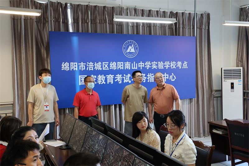 陈建强一行实地查看了绵阳中学实验学校、绵阳南山中学实验学校考务指挥中心、防疫物资储备室、监控室等重点场所,详细了解考场布置、疫情防控、考风考纪、外语听力播放、后勤保障以及应急预案等工作落实情况。陈建强对学校考点准备工作给予了充分的肯定。