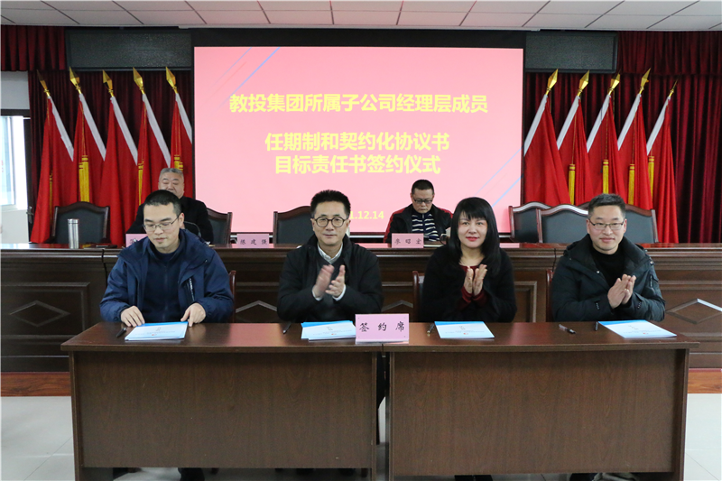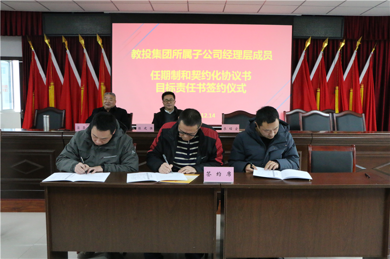 为落实贯彻市国资委关于国有企业深化改革三年行动部署要求,在教投集团经理层成员中逐步建立完善“职务能上能下、岗位能进能出、薪酬能增能减”考核激励机制,不断激发经理层成员干事创业新活力,教投集团全面实施所属子公司经理层成员任期制和契约化管理。按照工作安排,12月14日,教投集团举行经理层成员任期制和契约化签约仪式。