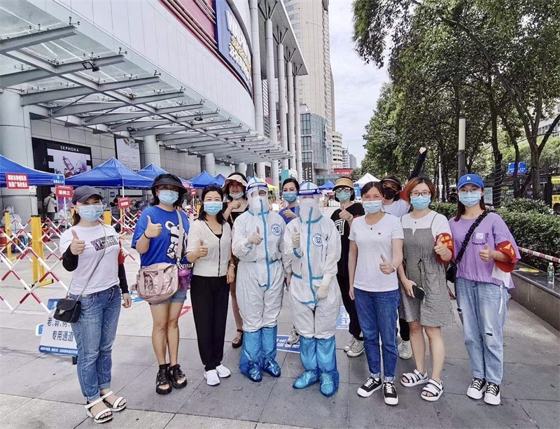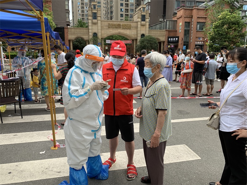 参与志愿服务,彰显国企担当。在做好自身防控的同时,教投集团还积极投身志愿服务,在跃进路1958核酸检测点、凯德广场核酸检测点、先锋路小学核酸检测点、城北七中核酸检测点开展现场志愿服务,与医务人员并肩作战,共同守护绵阳城,彰显了教投人的担当和使命。