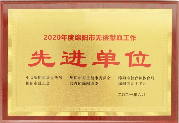 近日,中共绵阳市委宣传部、绵阳市卫生健康委员会、绵阳市教育和体育局、绵阳市总工会、共青团绵阳市委、绵阳市红十字会联合发布了《关于表扬2020年无偿献血先进集体、先进单位和先进个人的通报》,教投集团荣获“绵阳市无偿献血工作先进单位”称号。