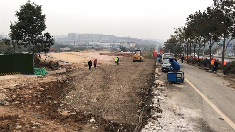 目前,绿化、燃气、给水、广电等相关迁改工程正在有序施工中,该项目施工涉及二环路部分道路封闭,为保证二环路道路正常通行,我公司加强施工组织,倒排工期,于A之路下穿二环路框架桥段建立“借一还一”辅道,现已基本成型,项目进度按照施工计划加快推进。