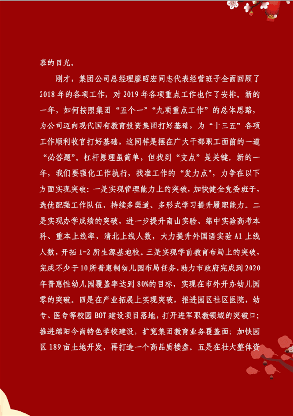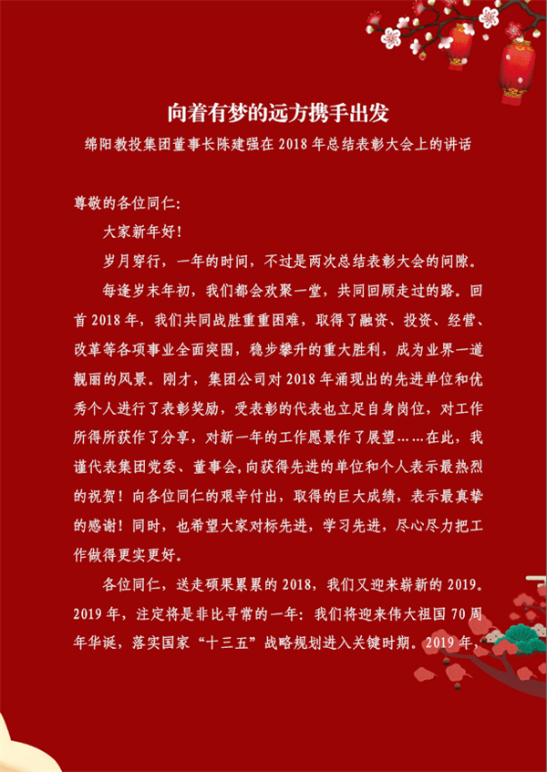 向着有梦的远方携手出发—— 教投集团董事长陈建强在2018年总结表彰大会上的讲话