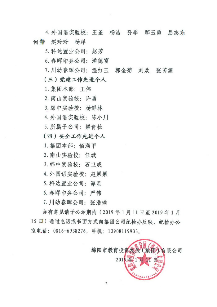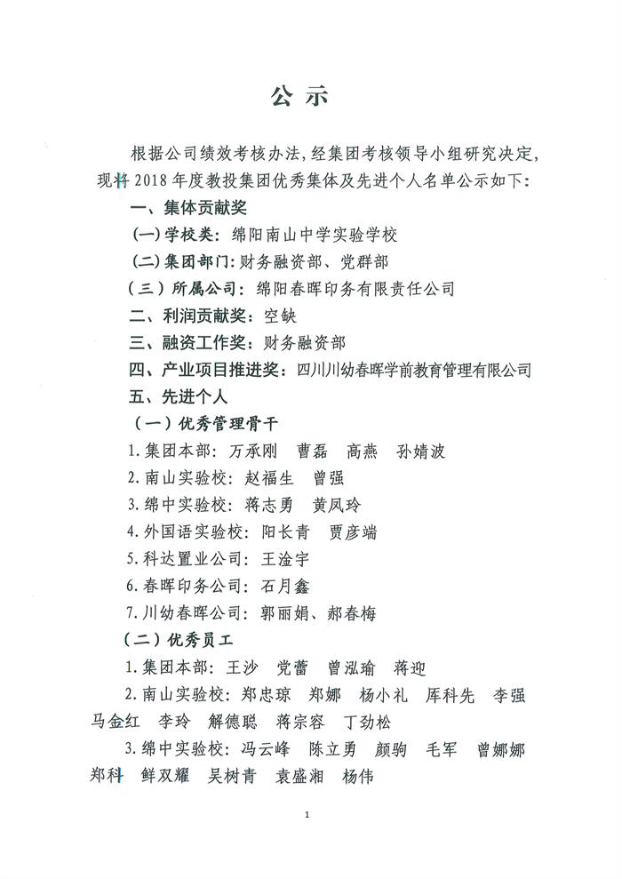 2018年教投集团优秀集体及先进个人名单公示