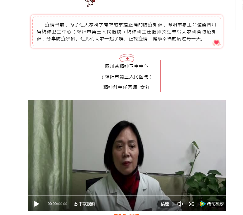 面对疫情“莫恐慌”,四川省精神卫生中心(绵阳市第三人民医院)精神科主任医师来帮忙