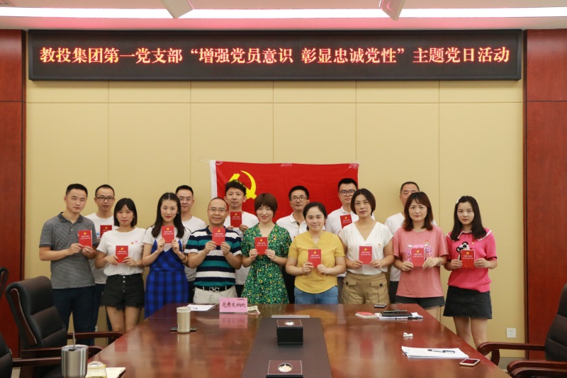 8月11日下午,教投集团第一党支部在集团105会议室开展“增强党员意识 彰显忠诚党性”主题党日活动。支部党员、发展对象、积极分子近20人参加,活动由支部书记孙婧波同志主持。