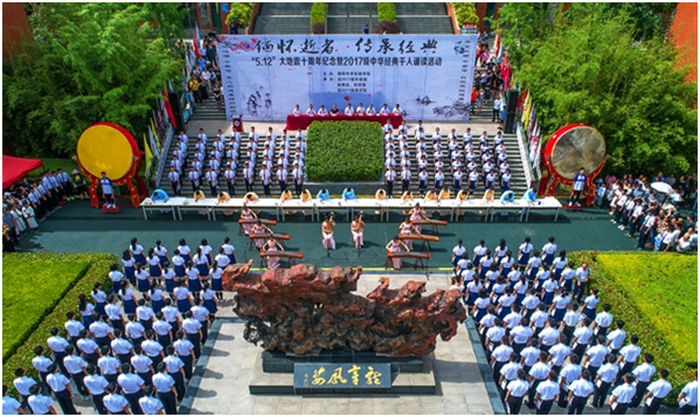 绵阳中学实验学校举行“5•12”大地震10周年纪念暨2017级中华经典千人诵读活动
