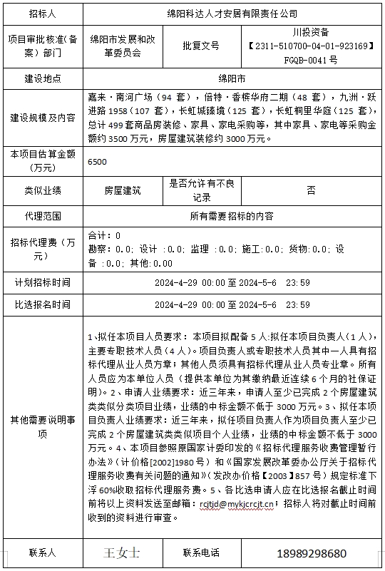 2023—2024 年度绵阳科技城市本级人才公寓项目招标代理机构比选公告