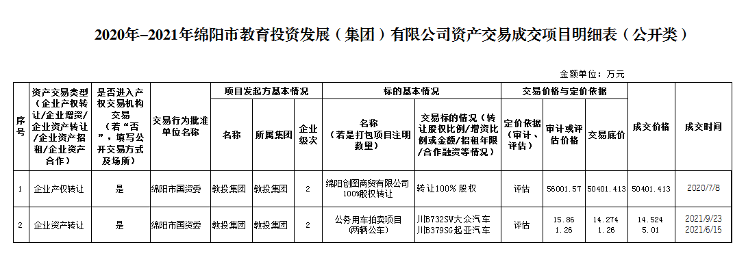 2020年-2021年绵阳市教育投资发展(集团)有限公司资产交易成交项目明细表(公开类)