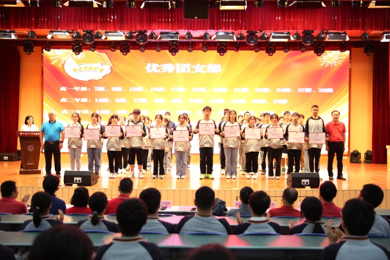 随后,会上为高一7班等42个获得“优秀团支部”荣誉的班级颁奖,并为获得“团干标兵”“团员标兵”及校团委学生会“优秀团干”荣誉的同学颁奖。