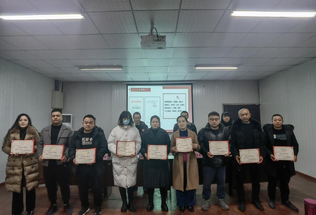 1月25日下午,公司2021年总结表彰工作会在春晖印务会议室举行,集团资深经理田仕富出席会议并讲话,执行董事、总经理万承刚主持会议,副总经理石月鑫、席加静和全体员工参加会议。