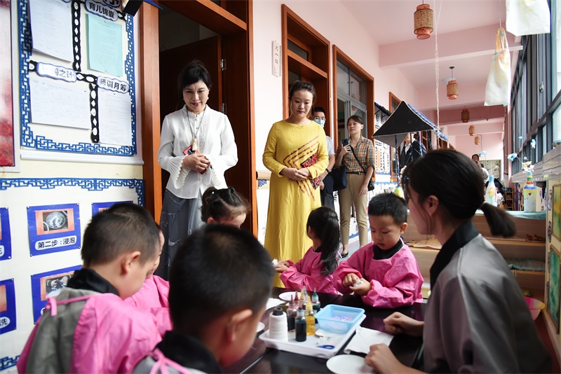 在川幼春晖沈家坝幼儿园,园长李良玉向张健一行介绍了该园的基本情况、办园特色。调研组一行参观了该园的开蒙礼、围棋、茶艺、国学经典诵读等活动后,张健对幼儿园鲜明的国学特色、丰富的课程内容、多样的组织形式表示欣慰;对幼儿园将国学教育从早抓起、从小抓起,在幼儿心中根植中华传统文化给予充分肯定。