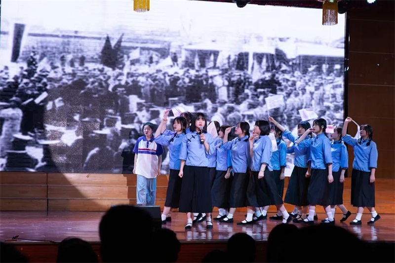 展评活动中,高一年级带来的《沁园春长沙》、《长征》、《开国大典》,生动地演绎了中国共产党是如何领导中国人民推翻三座大山,带领中华民族走向辉煌今朝。让大家充分认识到共产党人的成功绝非偶然,祖国的繁盛强大绝非侥幸,要想继续书写中华民族光辉的篇章,还需年轻一代继续努力。用当代青年人的视角阐述了现代青年应如何发奋图强。剧中一幕幕艰难奋进的场景敲打着观众的心,也时刻提醒着困苦的时代虽已过去,但前进的步伐终究没有停止。