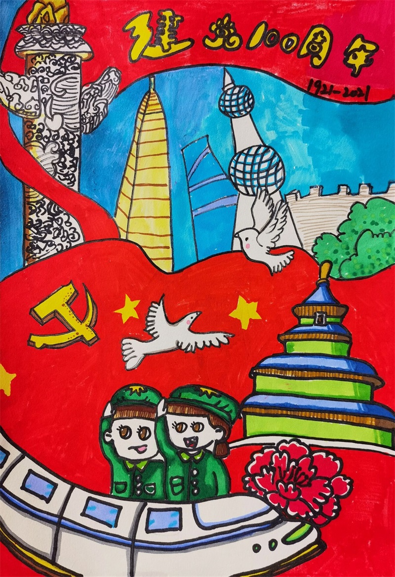 在小学二支部党员美术教师赖怡杉的指导下,同学们积极响应、用自己的方式、用最诚挚的童心和五彩的画笔创作了红心向党的主题画作,作品中呈现出讴歌党,讴歌人民,讴歌社会主义,讴歌改革开放,讴歌新时代的精神,抒发出对党的热爱。也充分展示了小学部“五育并举"的教育成果。
