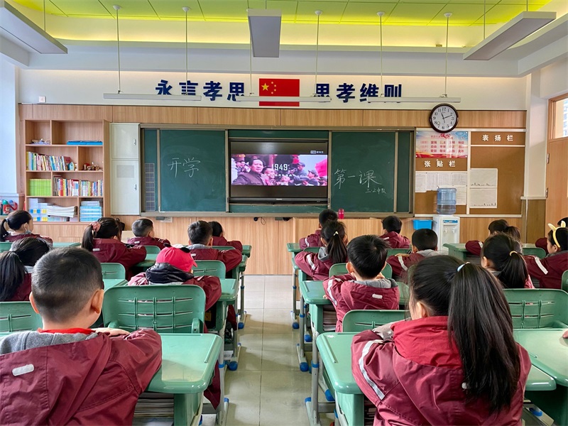 在初中部的“开学第一课”上,老师带领着学生重温历史,讲述中国共产党成长的百年沧桑,亦展现了中国共产党人为人民的无悔付出。通过观看红色影片,聆听、讲述烈士故事,培养孩子们热爱党和祖国的情怀,教育孩子们热爱生活、热爱学习、积极进取、奋发向上,做到口中有德、目中有人、心中有爱、行中有善,学会带着热情与宽容做人,带着严谨与勤奋求学。