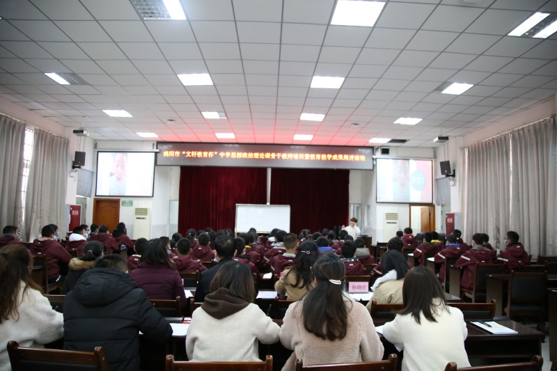 2020年12月10日(周四)下午,绵阳市“文轩教育杯”中学思想政治理论课骨干教师培训暨教育教学成果展评活动在学校隆重举行。绵阳市师培中心领导及中学思政学科专家一行7人莅临学校指导工作。学校初中政治胡静老师在展评活动中呈现了题为《合理利用网络》的展示课,课堂精彩纷呈,获得专家评委的高度好评。