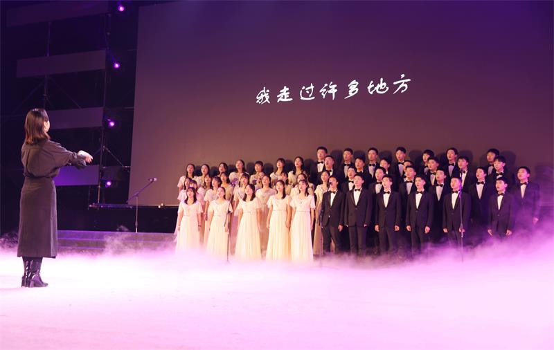 四声部合唱《彩虹》作为正式节目率先登场,演员们声音配合默契、动作协调一致,体现了较高的声乐艺术水平。