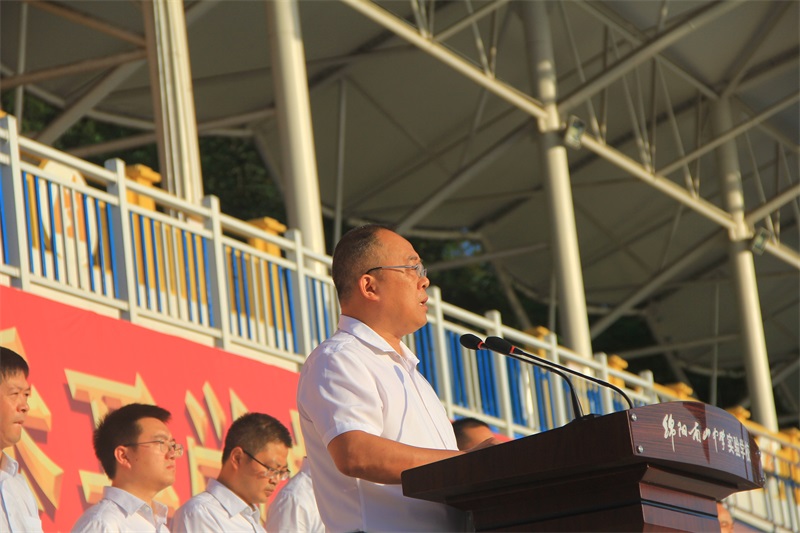 绵阳教育投资发展(集团)有限公司学工部部长孙婧波、绵阳南山中学实验学校全体师生参加开学典礼。