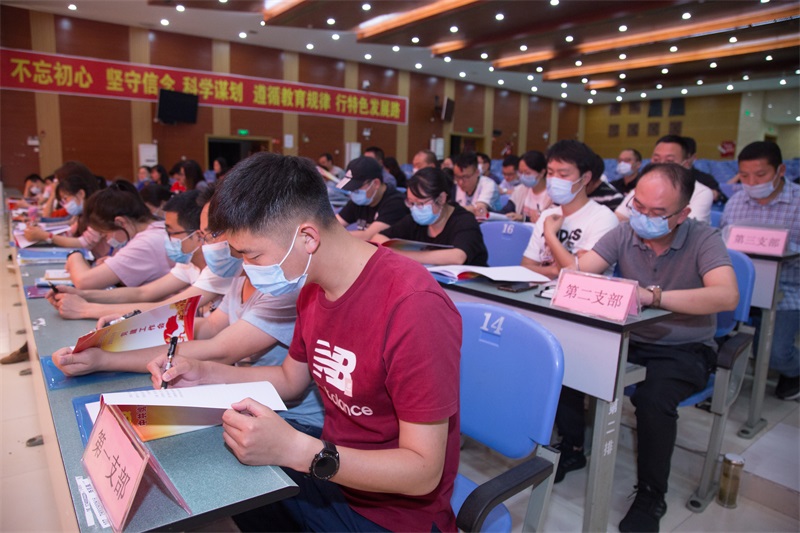 会上,翟勇同志分别和各支部负责同志签订了《2020年度党建工作目标责任书》、《2020年度党风廉政建目标责任书》。龚晓华同志组织全体党员干部学习《中国共产党纪律处分条例》《中国共产党支部工作条例(试行)》,并详细讲解发展党员工作流程。要求各支部认真学习党员发展流程,确保规范有序,做到零失误。