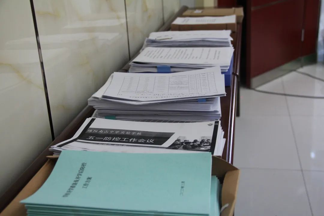 市教体局督查组在学校行政楼会议室与学校领导进行了简单的碰头交流之后,就迅速与学校各项工作的负责人进行了对接,开始对学校各项工作进行检查。专项督查组采取资料审查、现场检查、交流访谈、合议反馈等方式,全面深入、精准细致地检查了各项防疫防控工作。