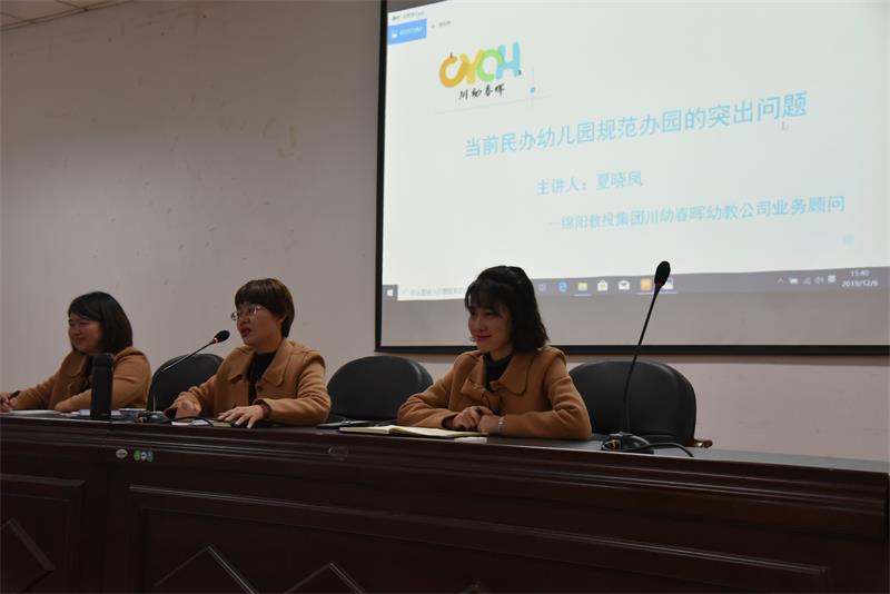 2019年12月6日下午7时许,四川幼儿高等专科学校西校区综合楼412教室依然灯火通明,人声鼎沸。四川省2019“国培计划”乡村民办幼儿园园长(举办人)规范办园培训班的200多名园长(举办人)齐聚于此,聆听绵阳教育投资发展集团川幼春晖学前教育管理有限公司夏晓凤副总经理对《当前民办幼儿园规范办园的突出问题》的专题讲座。