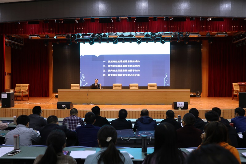 负责本次主讲的是来自南实的全国物理名师大赛特等奖获得者彭俊杰老师,他为全体学员作了《物理教师专业成长路径探索》的专题培训。彭老师从优质高效课堂是怎样炼成的、优秀试题是怎样命制出来的、优秀班主任是怎样培养学生的以及教育科研是教育家必经之路等四个方面进行了详细阐述。独到的观点,精彩的讲述,诙谐幽默的语言获得了在场名师们的阵阵掌声,老师们不时拿起手机拍摄课件,记笔记,生怕遗漏每一个要点。