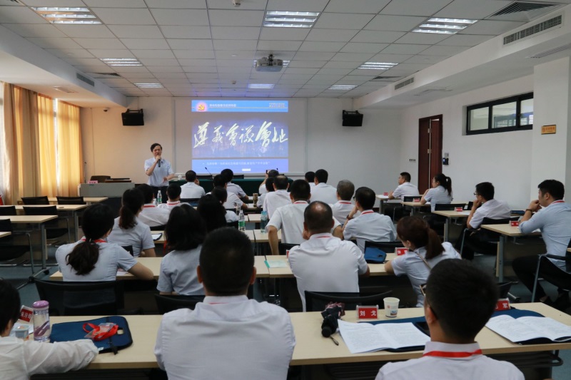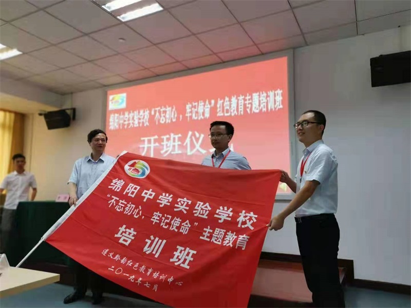 18日,全体学员在遵义市委党校举行了绵阳中学实验绵阳中学实验学校“不忘初心,牢记使命”主题教育开班仪式,遵义市委党校韦生彬教授介绍了遵义悠久的历史文化和经济社会的发展情况,并向培训班进行授旗。仪式后,韦教授进行了《遵义会议与遵义会议精神》专题教学。