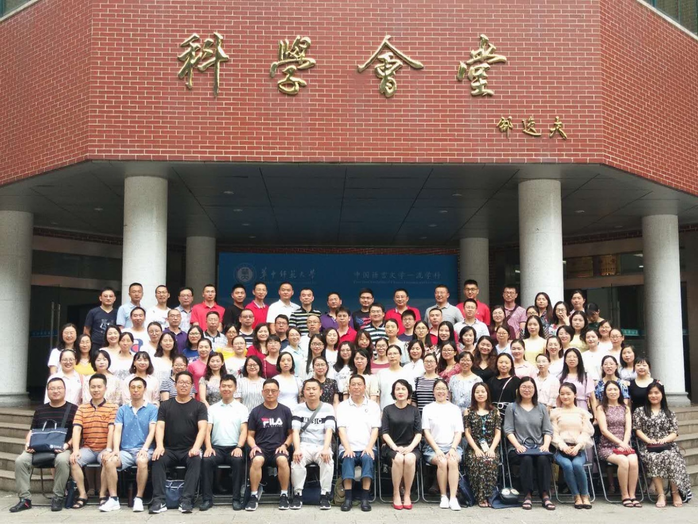凝聚智慧,提升能力;问道研学,创生幸福。2019年7月1日,绵阳南山中学实验学校的一百名老师来到美丽的武汉华中师范大学,参加暑假高中骨干教师研修班培训。全体学员在华师的科学会堂前合影。